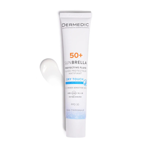 ضد آفتاب فلوییدی درمدیک مدل Dry Touch | بدون چربی، با جذب سریع و محافظت +SPF50
