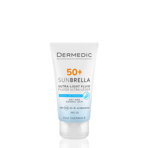 ضدآفتاب فلوییدی درمدیک Ultra-Light SPF50+ | بافت سبک، مناسب پوست خشک و نرمال