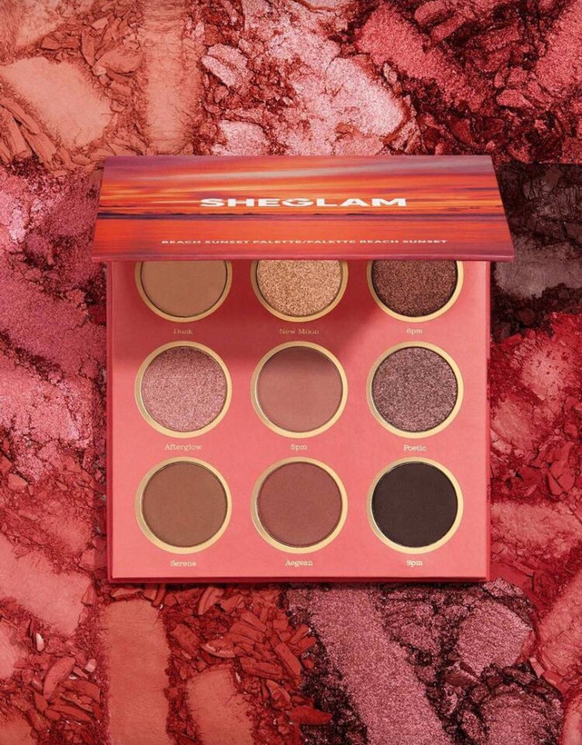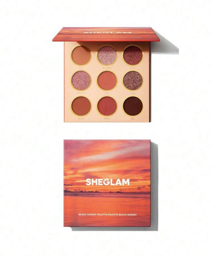 پالت سایه چشم SHEGLAM Beach Sunset Palette با الهام از رنگهای گرم و درخشان غروب ساحل طراحی شده و شامل ۹ سایه مات، براق و شایندار در تناژ نارنجی، طلایی، مسی و قهوهای است. بافت سبک و نرم سایهها بهراحتی پخش میشود و پیگمنت قوی آن، رنگی یکدست و ماندگار روی پلک ایجاد میکند.