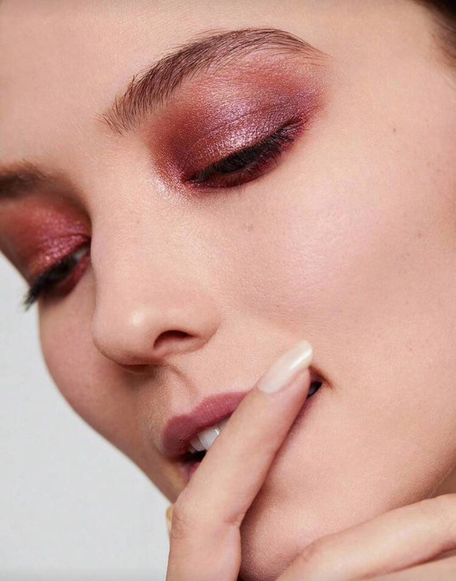 رنگهای مات را برای زمینه پلک استفاده کنید و سایههای براق را روی مرکز و گوشه چشم بزنید تا جلوهای درخشان و جذاب ایجاد شود.