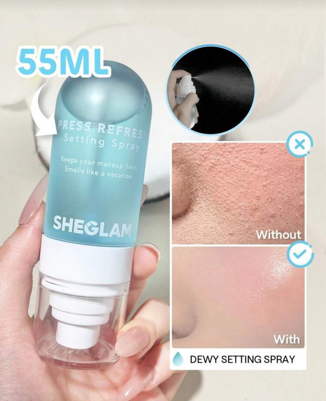 اسپری فیکس Press Refresh شیگلم با فرمول سبک و آبرسان، آرایش را تثبیت کرده و در طول روز ظاهری تازه و طبیعی ایجاد میکند