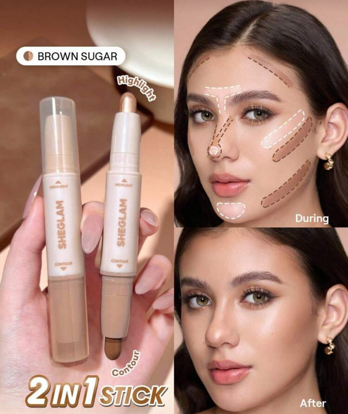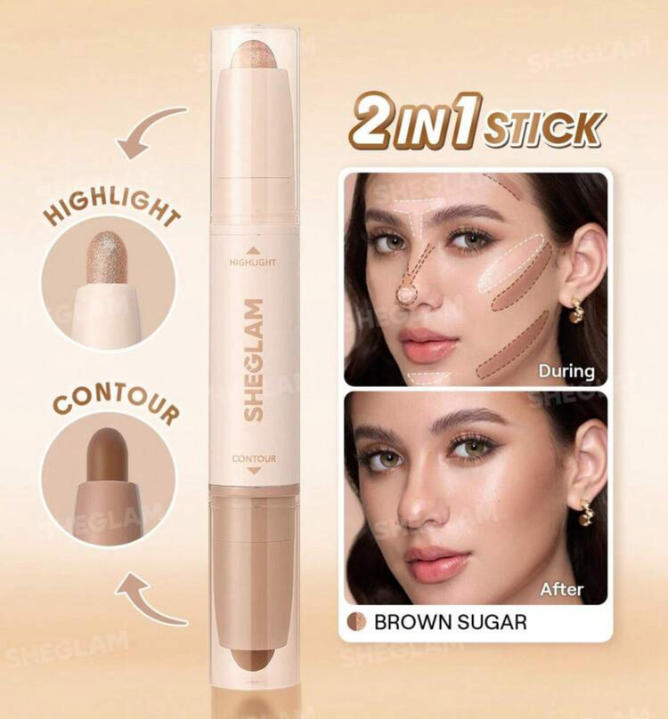 کانتور و هایلایتر دوطرفه SHEGLAM مدل Brown Sugar 2 in 1 Contour & Highlight Stick یک محصول کاربردی و حرفهای برای فرمدهی و درخشش صورت است. این استیک دوکاره، یک سمت کانتور کرمی با تناژ طبیعی و سمت دیگر هایلایتر براق و لطیف دارد که بهراحتی روی پوست فید میشود و جلوهای طبیعی و جذاب ایجاد میکند.