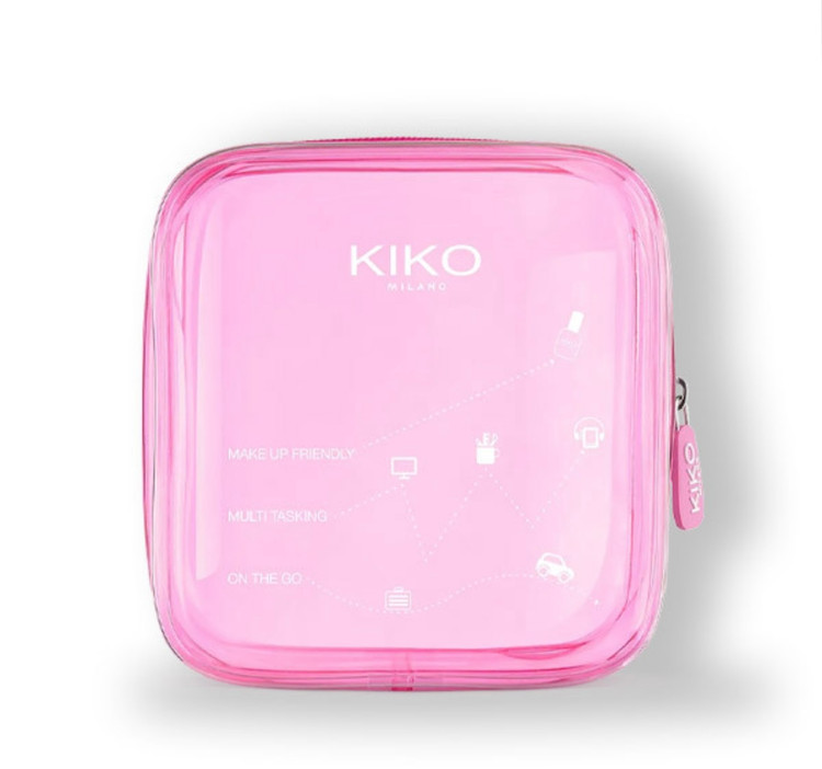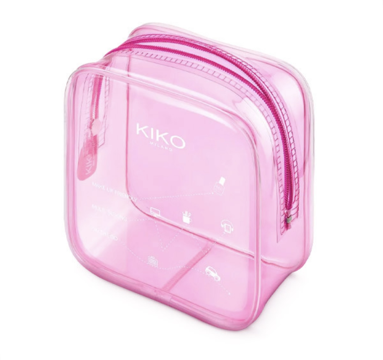 کیف آرایشی کیکو میلانو رنگ صورتی با طراحی شفاف، سبک و کاربردی؛ مناسب نگهداری لوازم آرایش در سفر و استفاده روزمره.