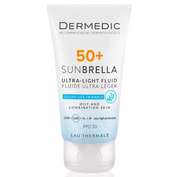 ضد آفتاب درمدیک مدل Sunbrella SPF50+ از برند تخصصی Dermedic یک فلوئید فوق سبک و حرفهای برای محافظت کامل از پوستهای چرب و مختلط است. این محصول با بافت بسیار سبک و زودجذب، بدون ایجاد حس چربی یا سنگینی، بهخوبی از پوست در برابر اشعههای مضر خورشید محافظت میکند.