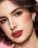 رژلب را از مرکز لب به سمت گوشهها بزنید. برای دقت بیشتر میتوانید از خط لب همرنگ استفاده کنید.