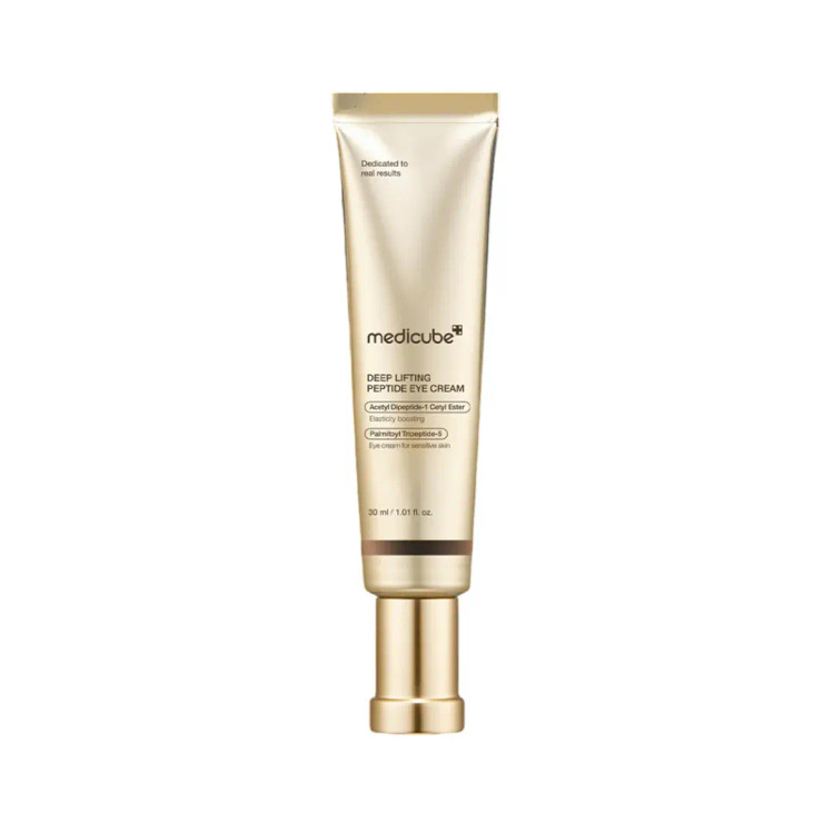 کرم دور چشم لیفتکننده و ضدچروک مدیکیوب Medicube Deep Lifting Peptide Eye Cream یک محصول تخصصی کرهای با فرمولاسیون پپتیدی پیشرفته است که بهطور مؤثر افتادگی، چروکهای ریز و خطوط اطراف چشم را کاهش میدهد. این کرم با ترکیب پپتیدهای قوی مانند Acetyl Dipeptide-1 Cetyl Ester و Palmitoyl Tripeptide-5 باعث تقویت کلاژن، افزایش انعطافپذیری و لیفت واقعی پوست دور چشم میشود.