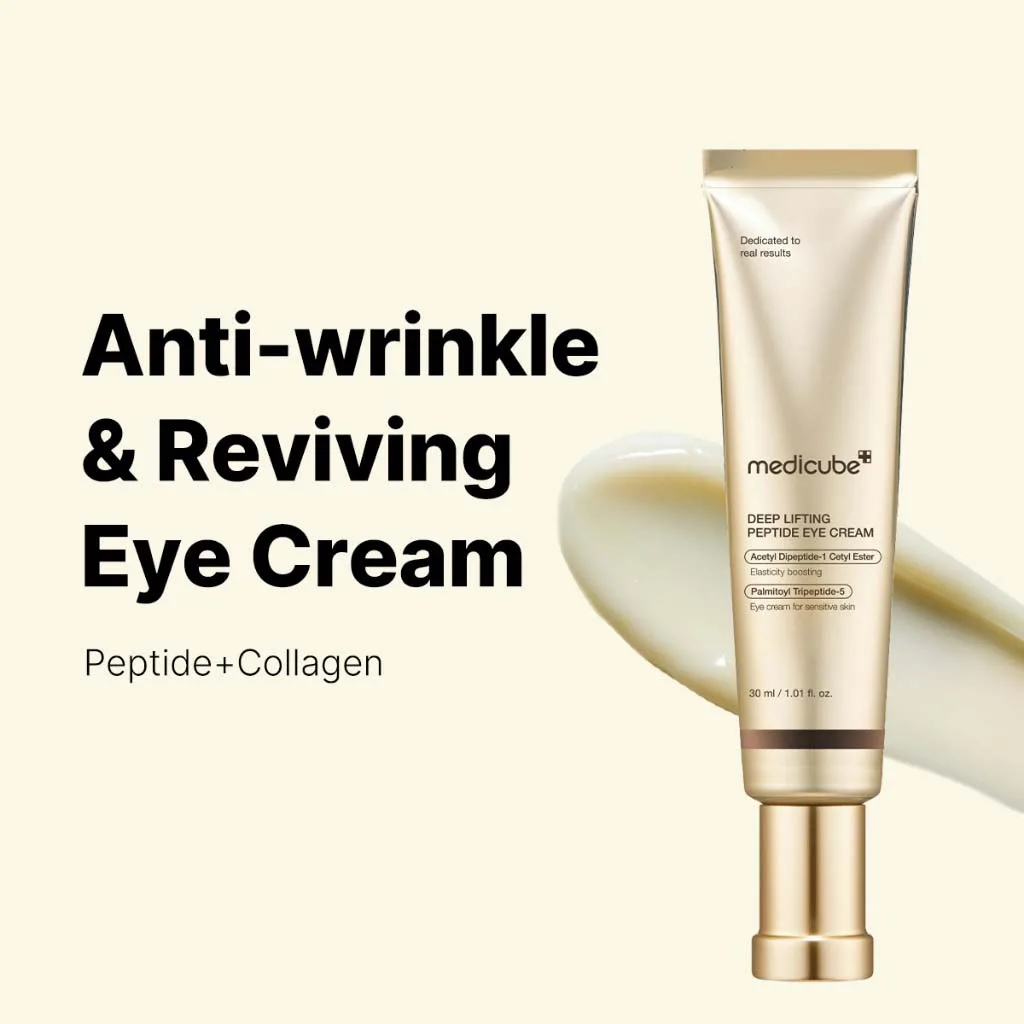 کرم دور چشم لیفتکننده و ضدچروک مدیکیوب Medicube Deep Lifting Peptide Eye Cream یک محصول تخصصی کرهای با فرمولاسیون پپتیدی پیشرفته است که بهطور مؤثر افتادگی، چروکهای ریز و خطوط اطراف چشم را کاهش میدهد. این کرم با ترکیب پپتیدهای قوی مانند Acetyl Dipeptide-1 Cetyl Ester و Palmitoyl Tripeptide-5 باعث تقویت کلاژن، افزایش انعطافپذیری و لیفت واقعی پوست دور چشم میشود.